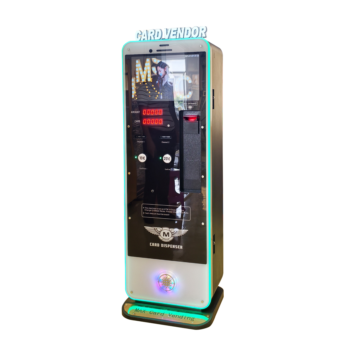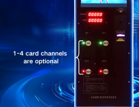 Intelligent card dispenser, 1-4 card channels are optional and cards can be easily resized.