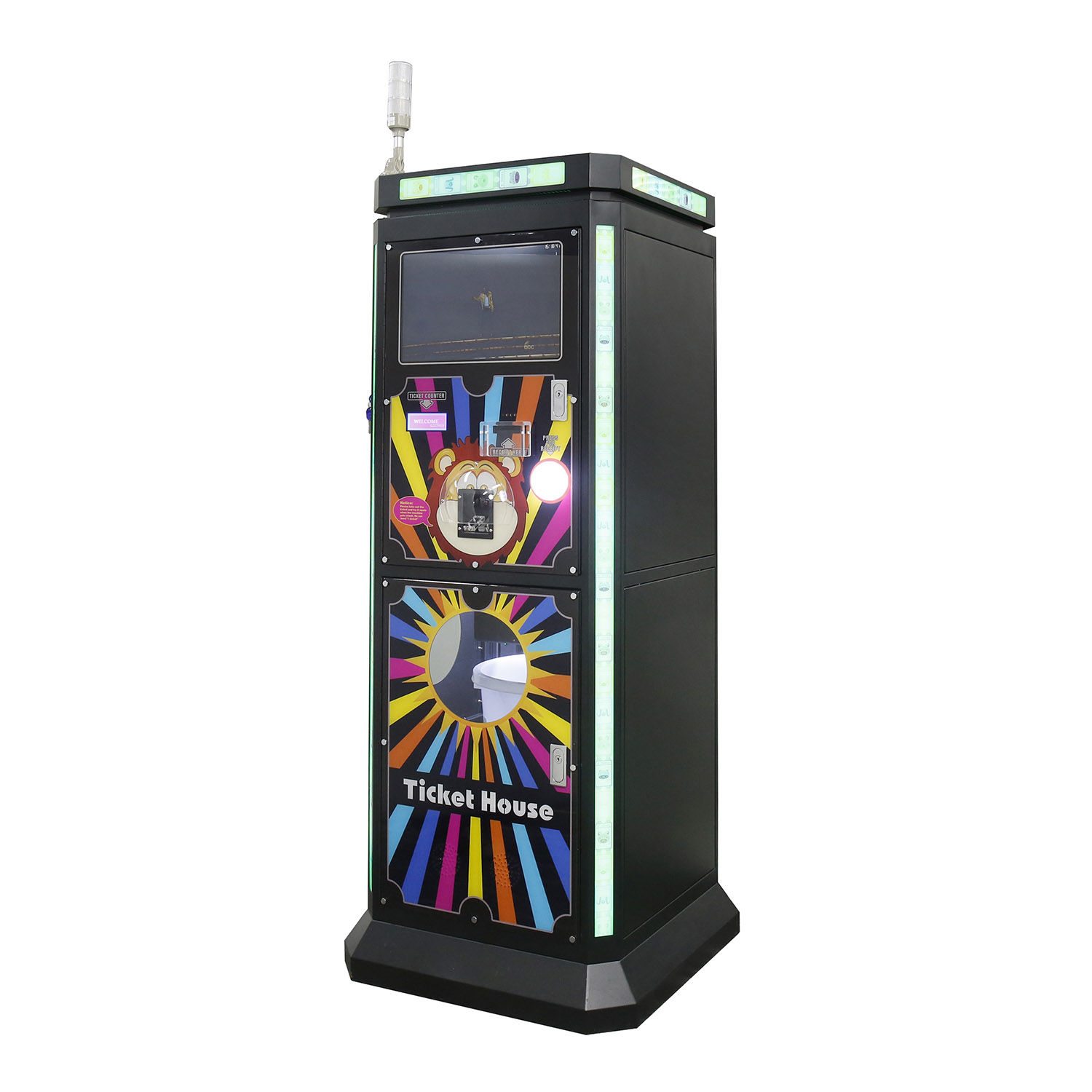 LED light box and larger cabinet with good heat dissipation; capacity of 150,000-200,000 tickets.